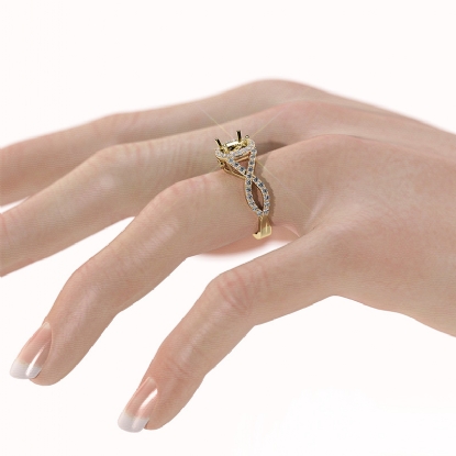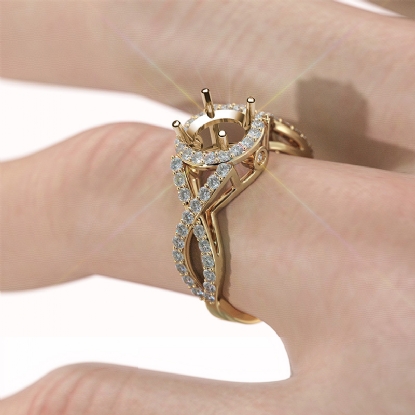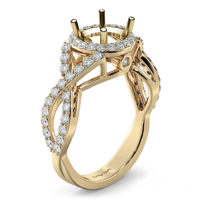Halo XOXO Diamond Engagement Ring 18k Gold Round Semi Mount Band (0.9Ct. tw.)