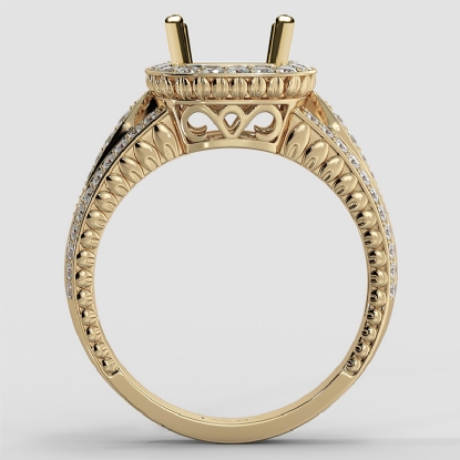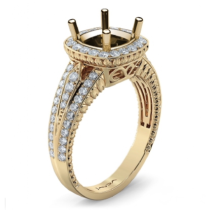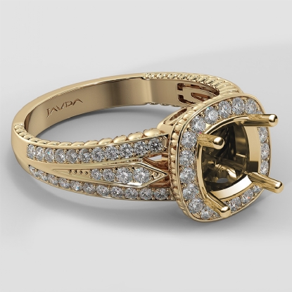 Diamond Vintage Engagement Halo Ring Cushion Semi Mount 14k Gold Band (0.8Ct. tw.)