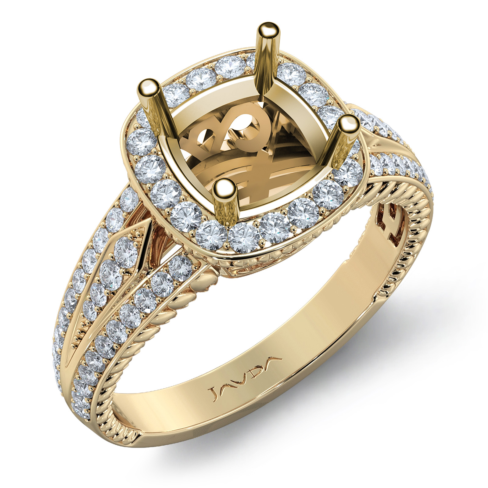 Diamond Vintage Engagement Halo Ring Cushion Semi Mount 18k Gold Band (0.8Ct. tw.)