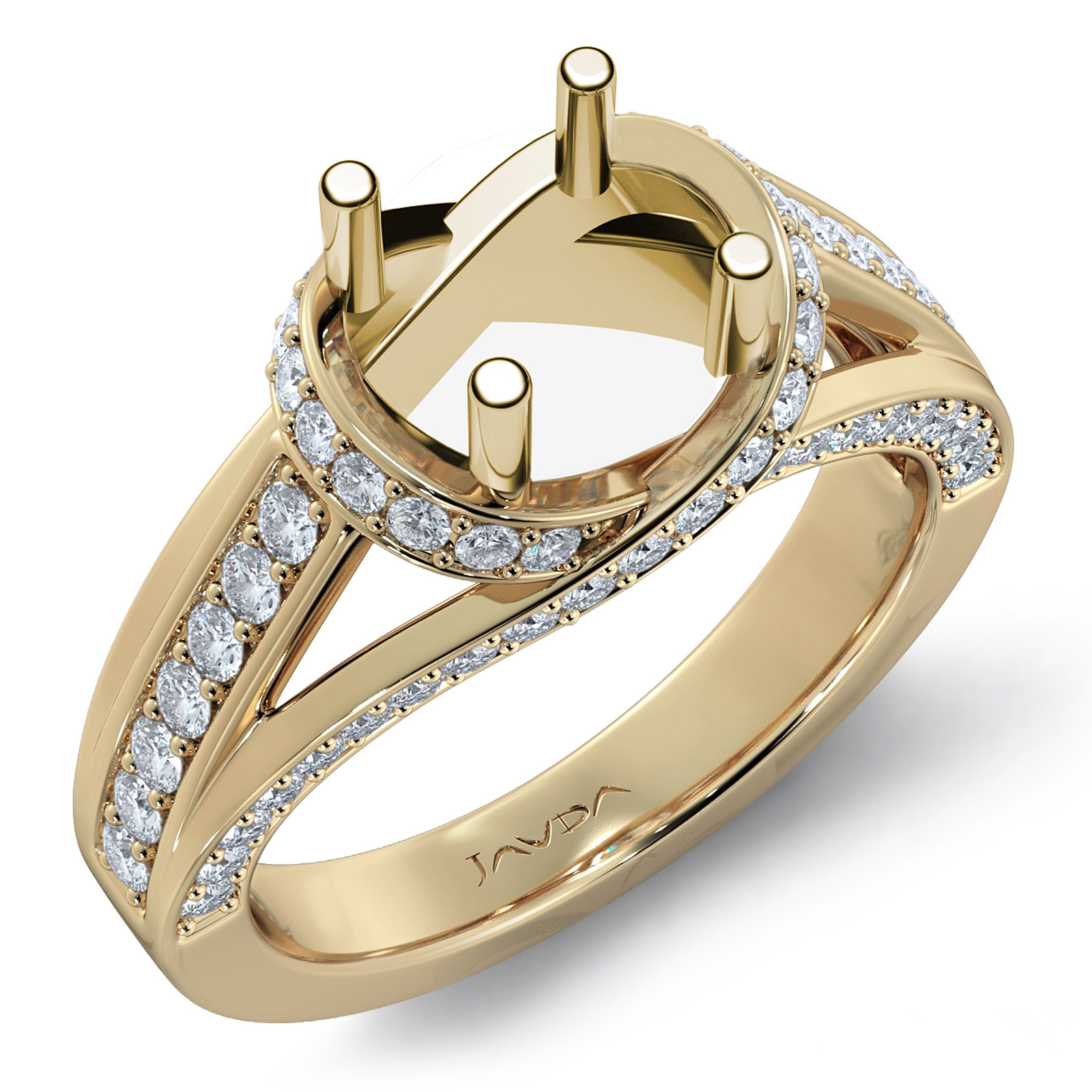 Diamond Engagement Ring 18k Gold Round Semi Mount Pave Set Band (0.9Ct. tw.)