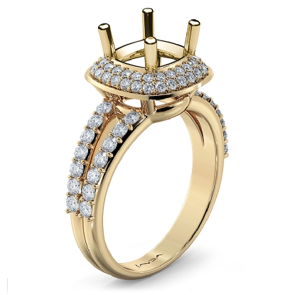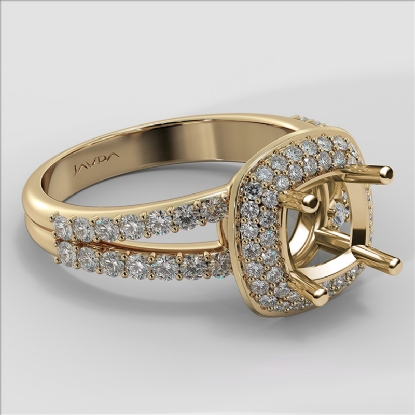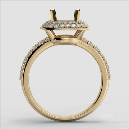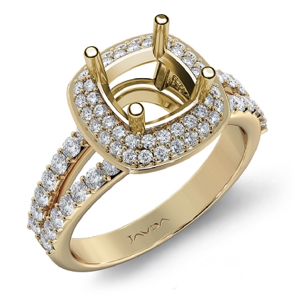 2 Row Halo Pave Diamond Engagement Cushion Ring 14k Gold Semi Mount (0.7Ct. tw.)