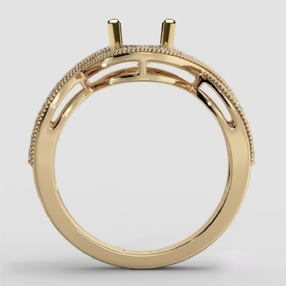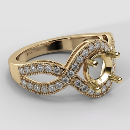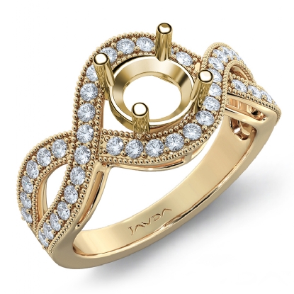 Halo Set Diamond Engagement 14k Gold Round Semi Mount Milgrain Ring (0.45Ct. tw.)