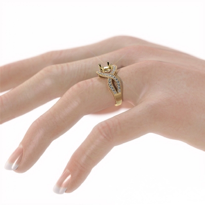 Made with love this 14k Gold Yellow diamond engagement ring is ready to set high standards. It features a round semi mount, with . halo pave milgrain set round diamonds on the gorgeous halo & shank. It weights 4.6 gram. (0.45Ct. tw.)