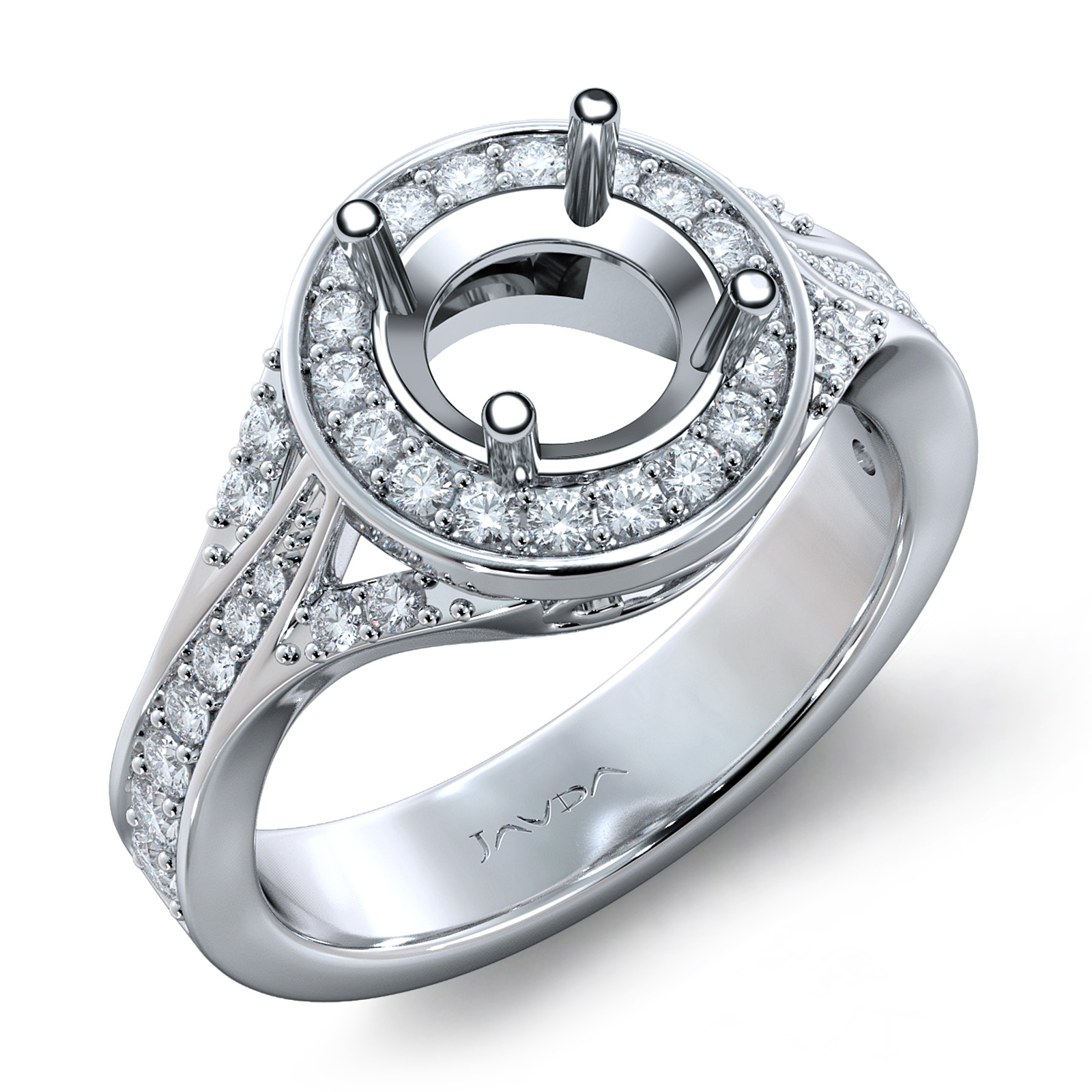 Diamond Engagement Halo Pave Set Ring Round Semi Mount Platinum (0.45Ct. tw.)