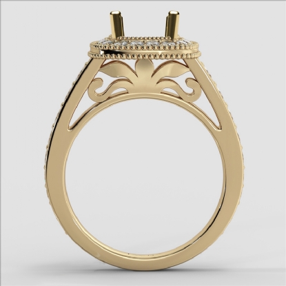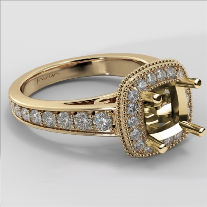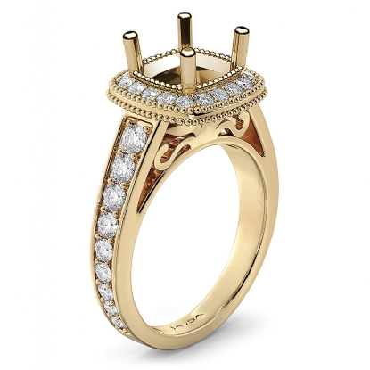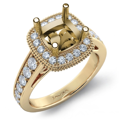 Diamond Engagement Cushion Semi Mount 14k Gold Halo Milgrain Ring (0.8Ct. tw.)