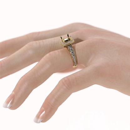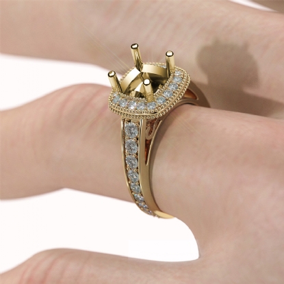 Get ready for glamour, with this striking diamond engagement ring made in 14k Gold Yellow. This cushion semi mount ring features . pave set round diamonds & milgrain dazzling in halo & the shank. It weights 6.5 gram. (0.8Ct. tw.)
