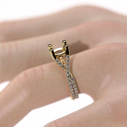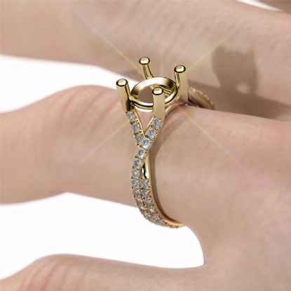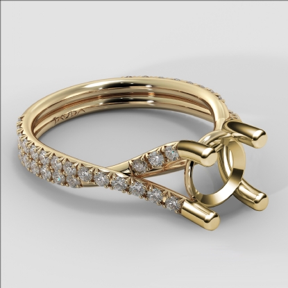 Worthy of your eternal love, this diamond engagement ring is made in 14k Gold Yellow & features an round semi mount. It showcases . French Cut Pave round diamonds in criss cross gorgeous shank.It weights 3.9 gram. (0.45Ct. tw.)