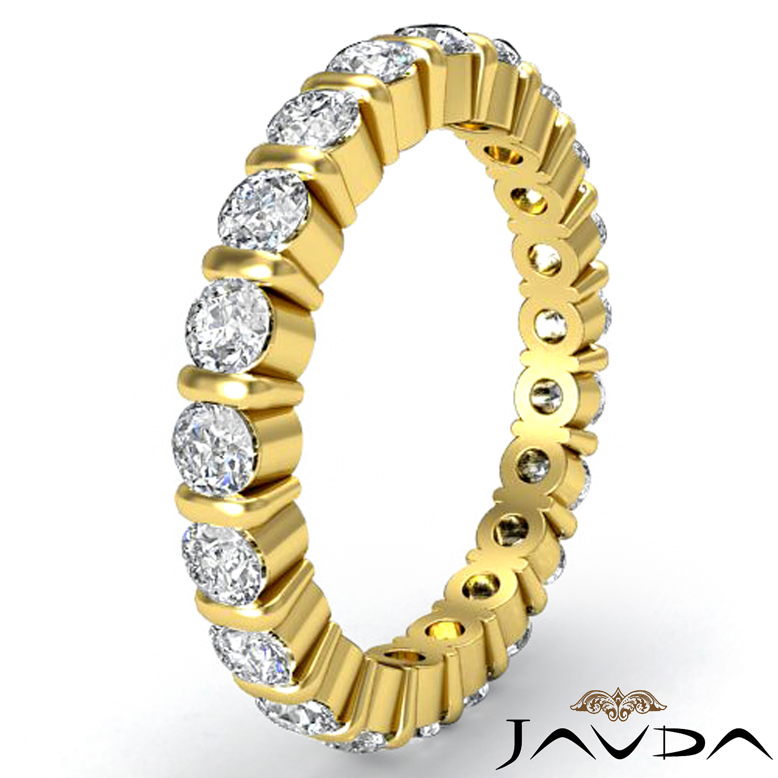 Round Diamond Bar Set Eternity Wedding band Women Ring made in 14k Gold Yellow. (1.5Ct. tw.)