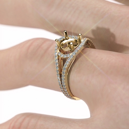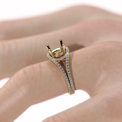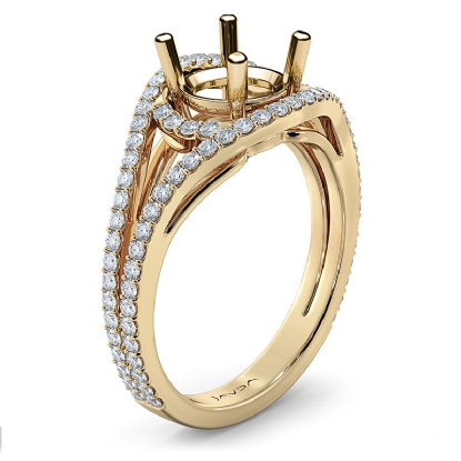 This Beautiful diamond engagement ring is made in glorious 14k Gold Yellow. This round cut semi mount ring features . round diamonds in U cut shared prong setting along the split shank. It weights 4.8 grams (0.65Ct. tw.)
