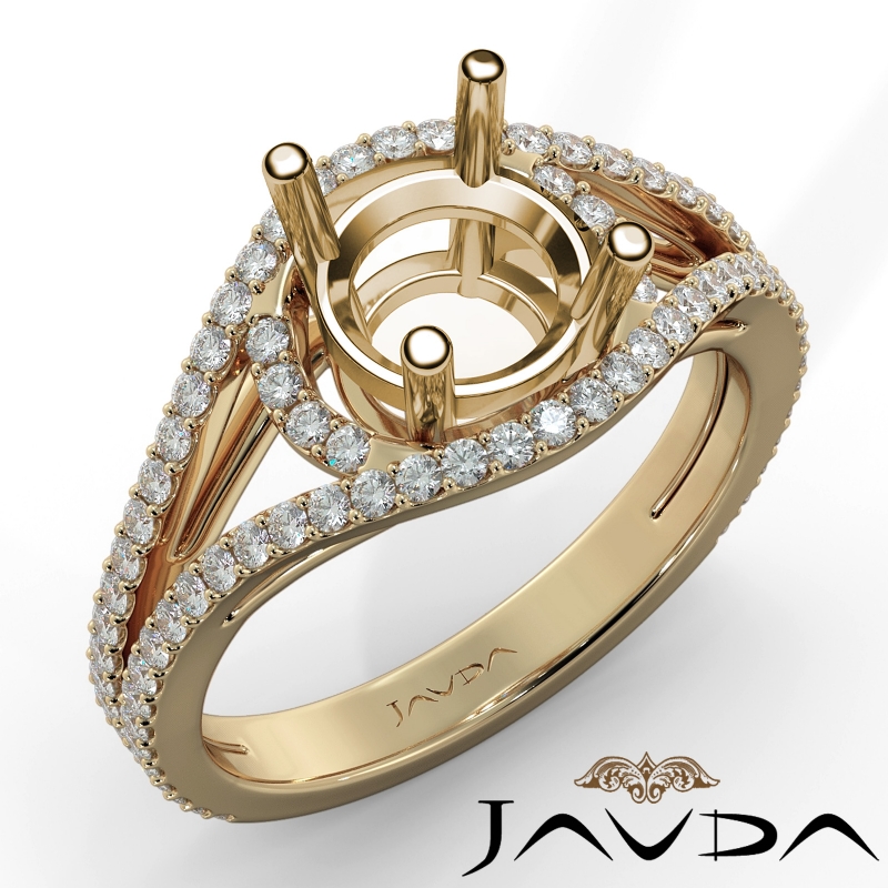 This Beautiful diamond engagement ring is made in glorious 18k Gold Yellow. This round cut semi mount ring features . round diamonds in U cut shared prong setting along the split shank. It weights 4.8 grams (0.65Ct. tw.)