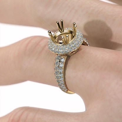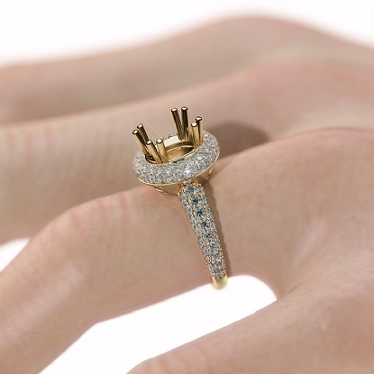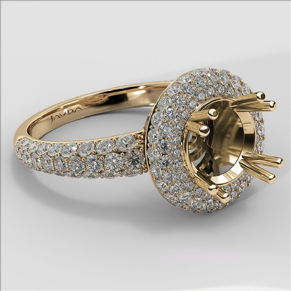 Halo Pave Set Diamond Engagement Round Semi Mount 18k Gold Ring (1.25Ct. tw.)