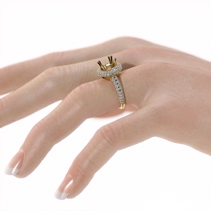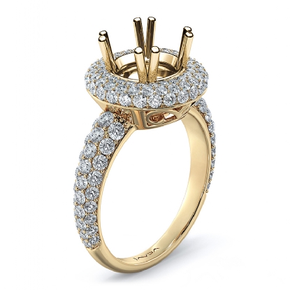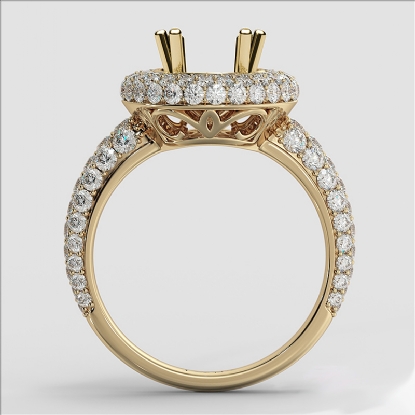 Get ready for glamour, with this diamond engagement ring crafted in 18k Gold Yellow. This round semi mount ring features . pave set round diamonds dazzling in halo & the shank. It weights 5.3 grams. (1.25Ct. tw.)