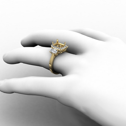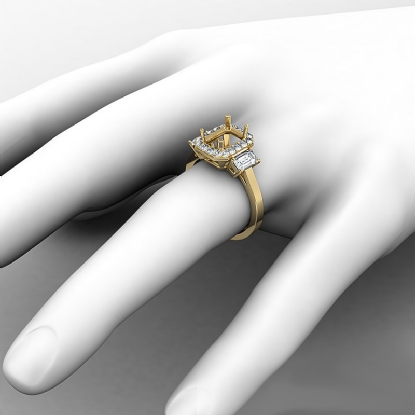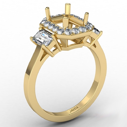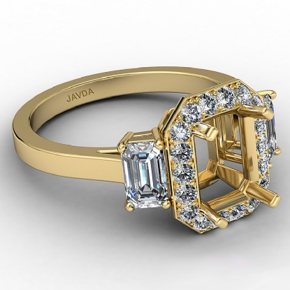 Get ready for glamour, with this 3 stone diamond engagement ring crafted in 18k Gold Yellow. This emerald semi mount ring features . pave set round diamonds dazzling in halo. It weights 3.6 grams. (0.78Ct. tw.)