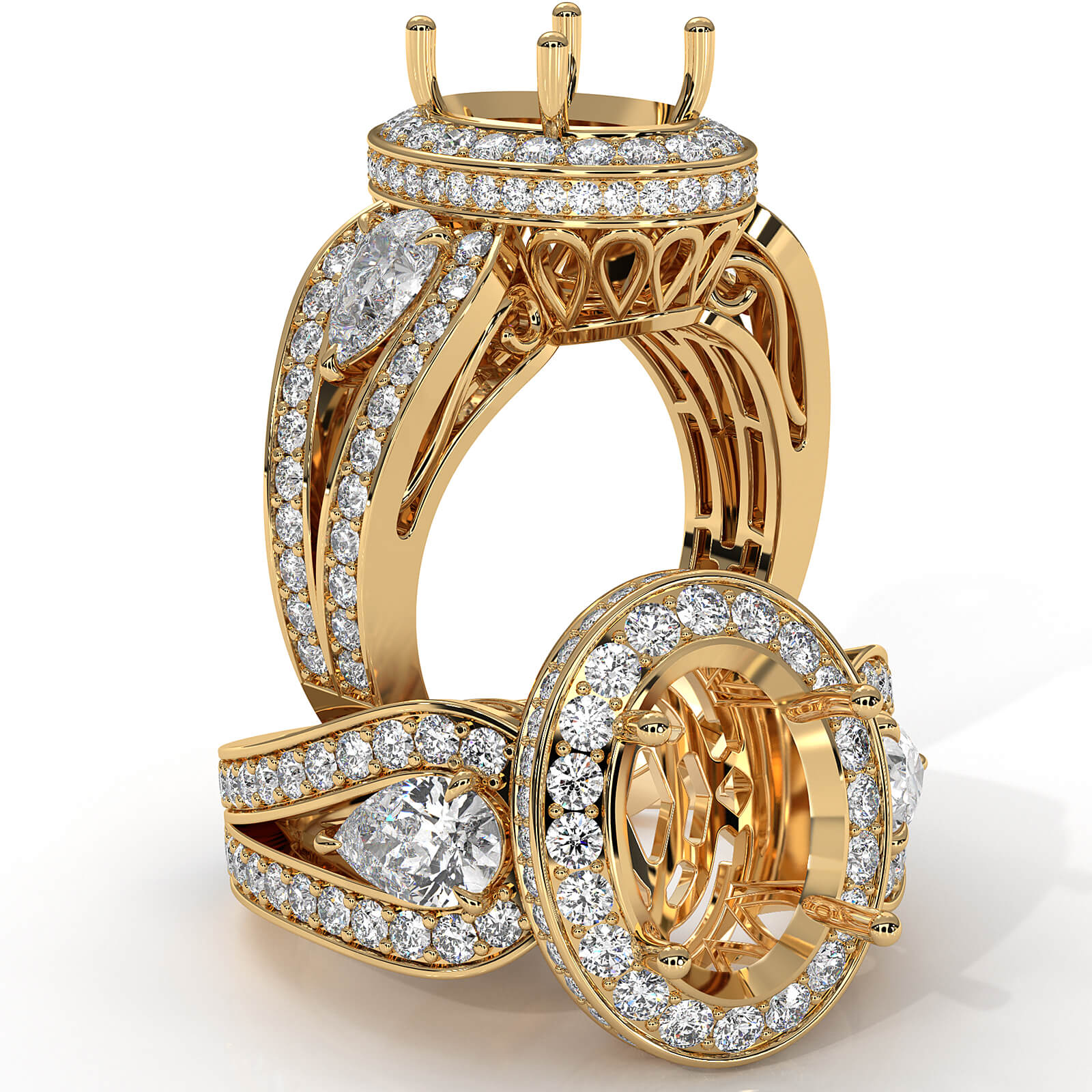 Capture the moment with this 14k Gold Yellow engagement ring, featuring a oval semi-mount halo of round diamonds. It showcases of total round diamonds &