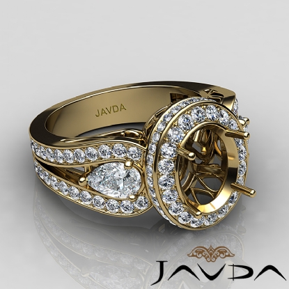 Vintage 3Stone Oval Diamond Engagement Halo Ring Setting 14k Gold Semi Mount (1.85Ct. tw.)