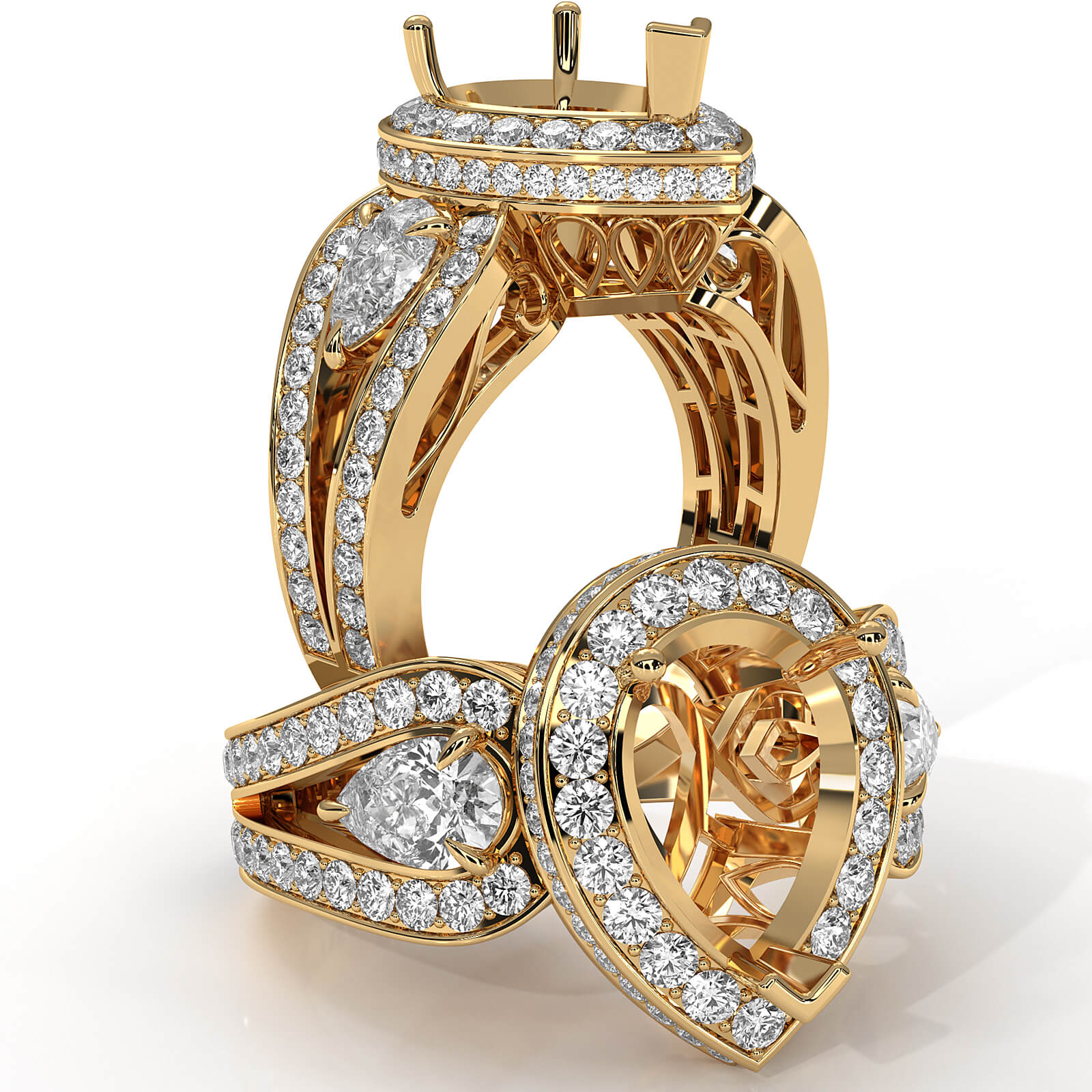 Pear Diamond Antique Engagement Halo 3Stone Ring Setting 14k Gold Semi-Mount (1.85Ct. tw.)