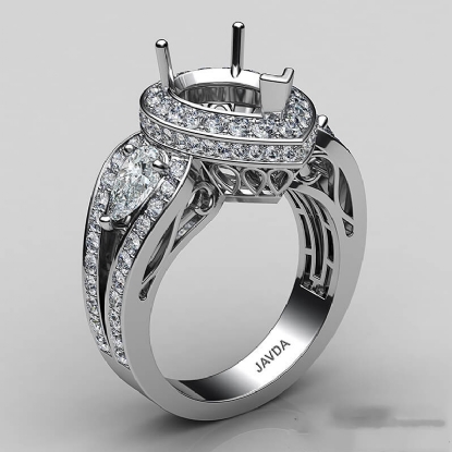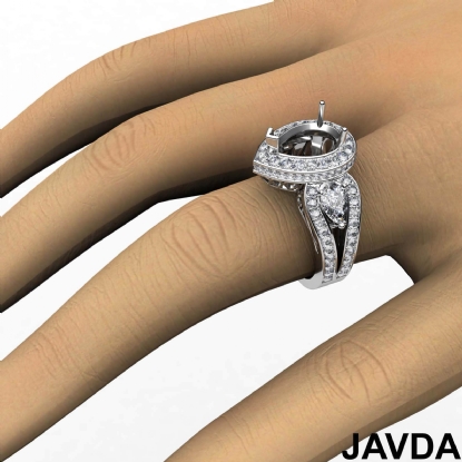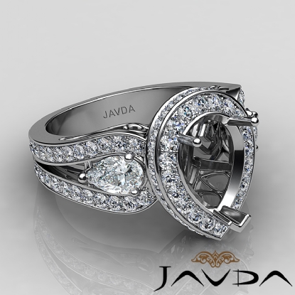 Pear Diamond Antique Engagement Halo 3Stone Ring Setting 18k W Gold Semi-Mount (1.85Ct. tw.)