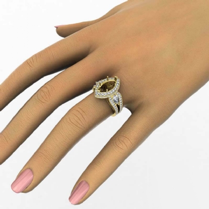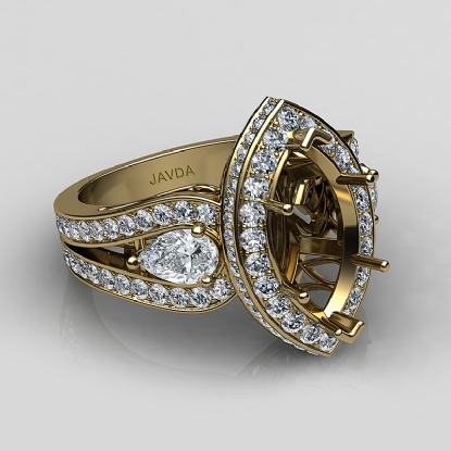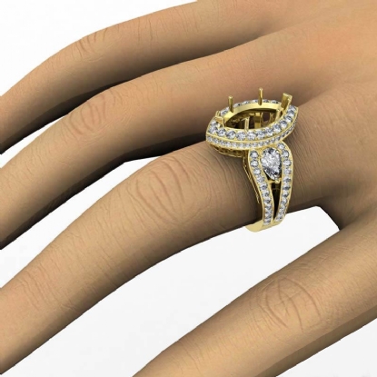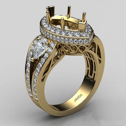 Capture the moment with this 14k Gold Yellow 3 stone engagement ring, featuring a marquise semi-mount halo of round diamonds. It showcases of total round diamonds &