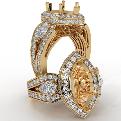 3 Stone Marquise Halo Diamond Engagement Antique & Vintage Ring 14k Gold Semi Mount (1.85Ct. tw.)