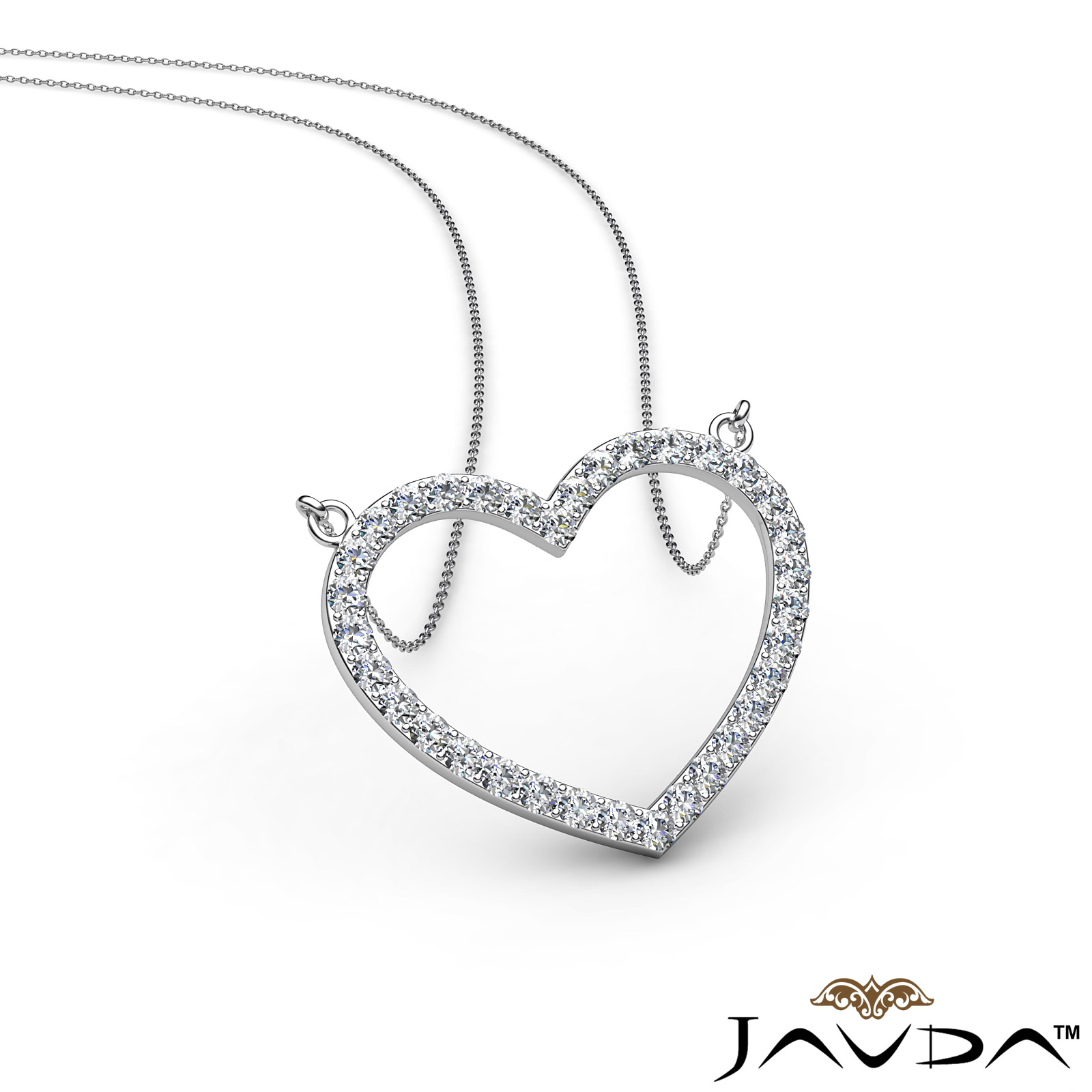 Open Heart Frame Pendant Necklace In Platinum Round Diamonds (1Ct. tw.)