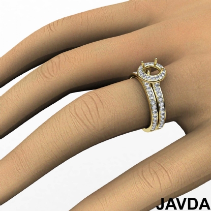 Round Halo Diamond Semi Mount Engagement Ring Bridal Set 14k Gold (0.95Ct. tw.)