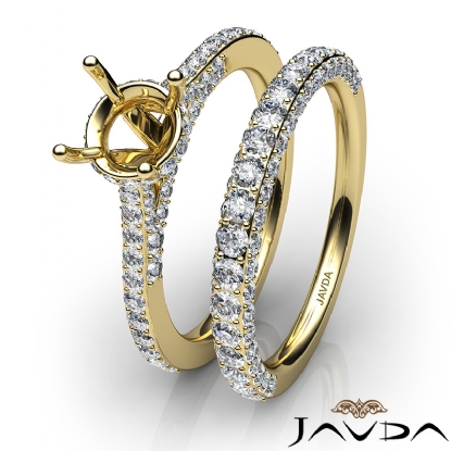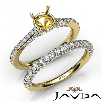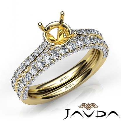 Pave Diamond Engagement Ring Round Semi Mount Bridal Set 18k Gold (1.65Ct. tw.)