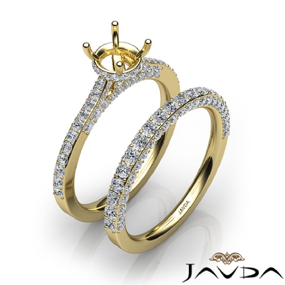Elegant in any way, this round semi mount engagement ring and bridal set feature . round pave set diamonds along the shank. The bridal set is made in 18k Gold Yellow. (1.65Ct. tw.)