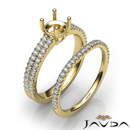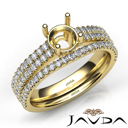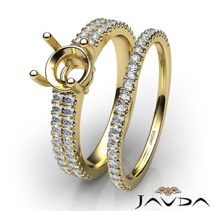 Breathtaking in design, this 14k Gold Yellow round semi mount engagement ring comes with a matching band. It features . round U Split Cut Prong set diamonds in shank. This bridal set will be the perfect choice. (0.8Ct. tw.)