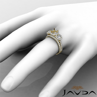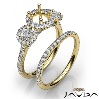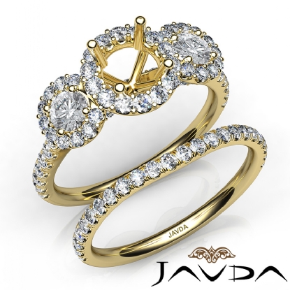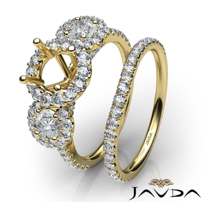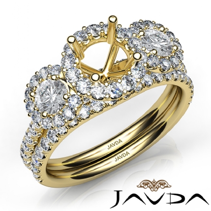 Halo Diamond 3 Stone Engagement Ring Bridal Set 18k Gold Semi Mount (1.45Ct. tw.)