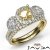 Elegant in its own way! This 3 Stone round semi mount engagement ring and matching band feature . round diamonds on the Halo with U Cut Split Prong diamonds on each side and in halo and on the shank. This bridal set is made in 18k Gold Yellow. (1.45Ct. tw.)