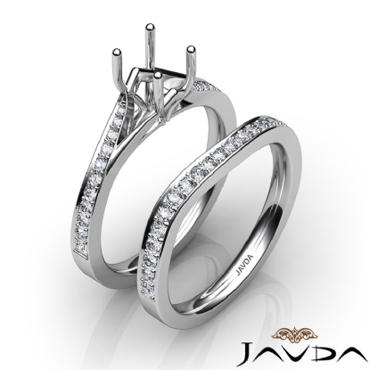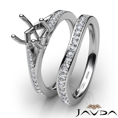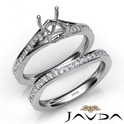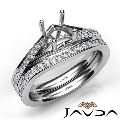 Pave Diamond Engagement Ring Round Semi Mount Bridal Set Platinum (0.9Ct. tw.)