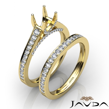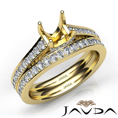 Round Pave Diamond Engagement Semi Mount Ring Bridal Sets 14k Gold (1.25Ct. tw.)