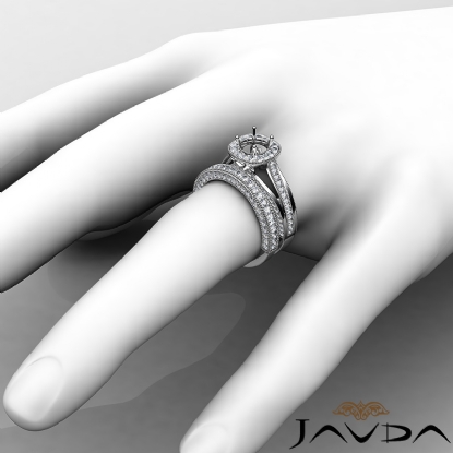 Pave Diamond Engagement Ring Bridal Sets 18k W Gold Round Semi Mount (1.7Ct. tw.)