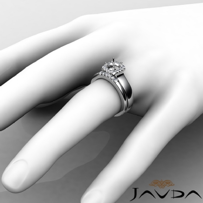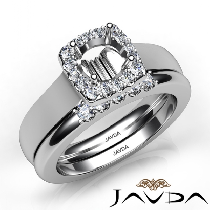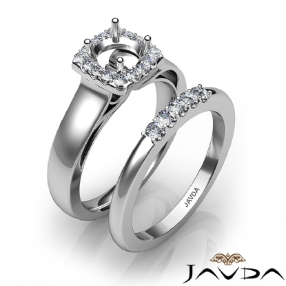 This Magnificent engagement ring and matching band feature an round semi mount in Halo U Cut prong setting diamonds on shank also. This . bridal set is crafted in Platinum 950. (0.4Ct. tw.)