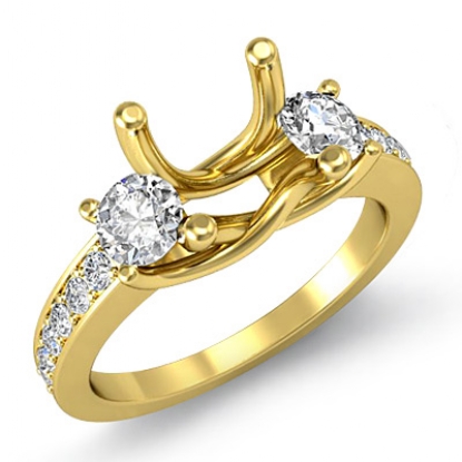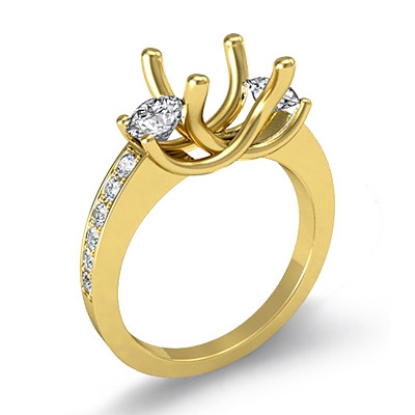 Round Diamond 3 Stone Engagement Ring Setting 14k Gold Semi Mount (0.8Ct. tw.)