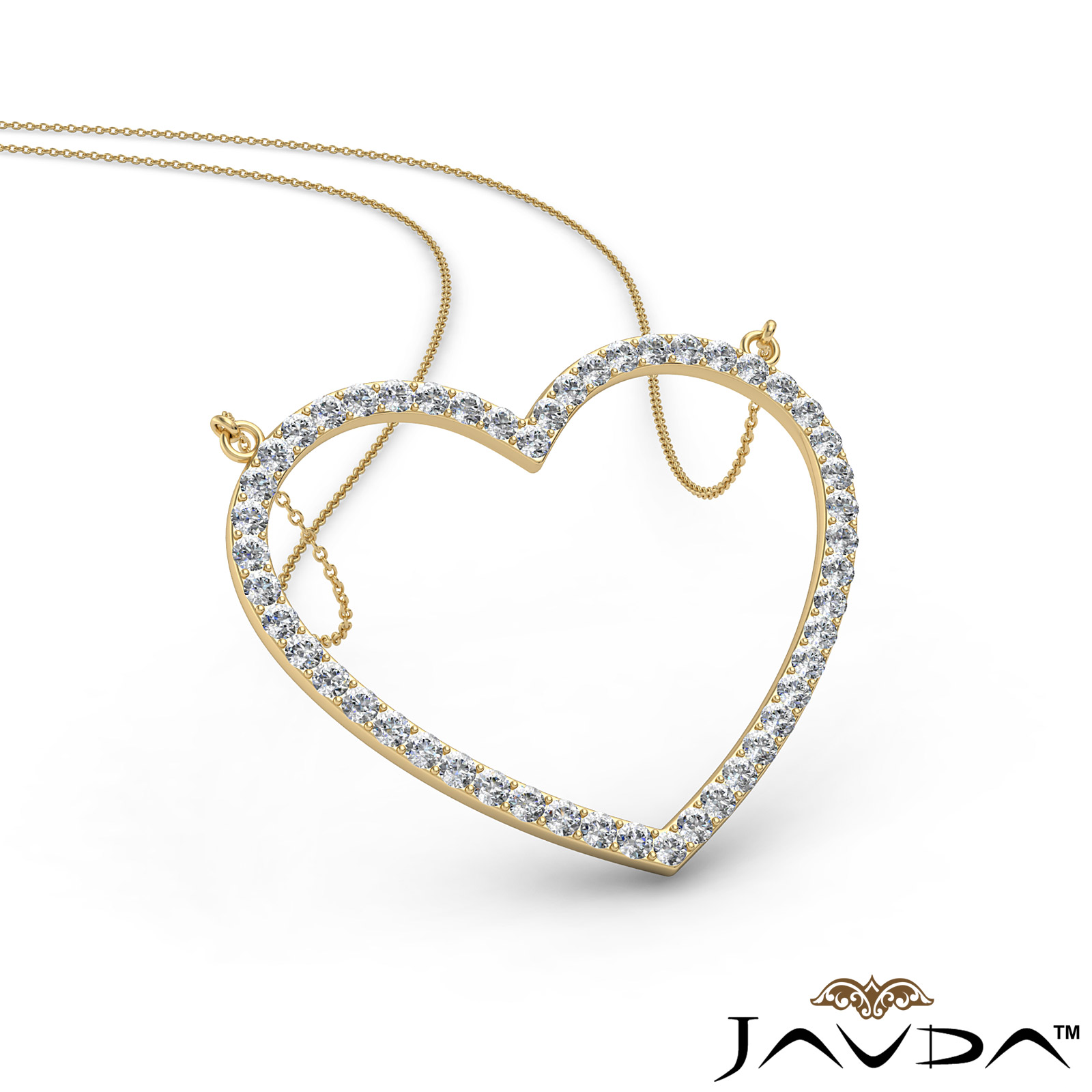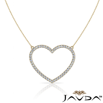 A timeless open heart pendant necklace made from 14k Gold Yellow. This lovely pendant outlined by round diamonds in micro pave setting, secures with a polished spring ring clasp. This romantic heart pendant necklace could be perfect to express your love emotion, available in 14k & 18k white gold, yellow gold, rose gold and platinum 950. (1.5Ct. tw.)
