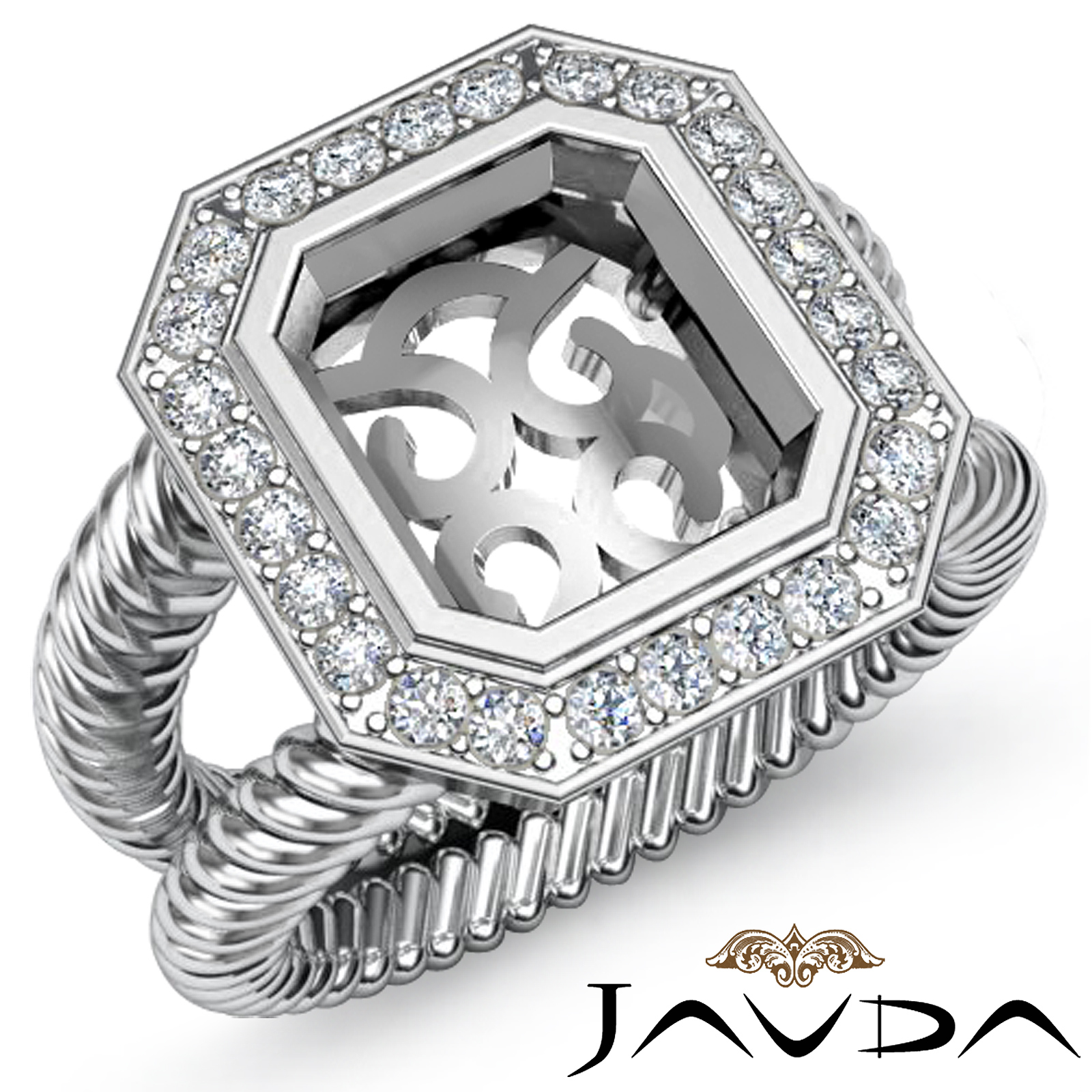 Bring brilliance to life?s great moments, with this semi mount diamond engagement ring, Made in Platinum 950, it features pave set round diamonds in halo & a very gorgeous rope shank. (0.35Ct. tw.)