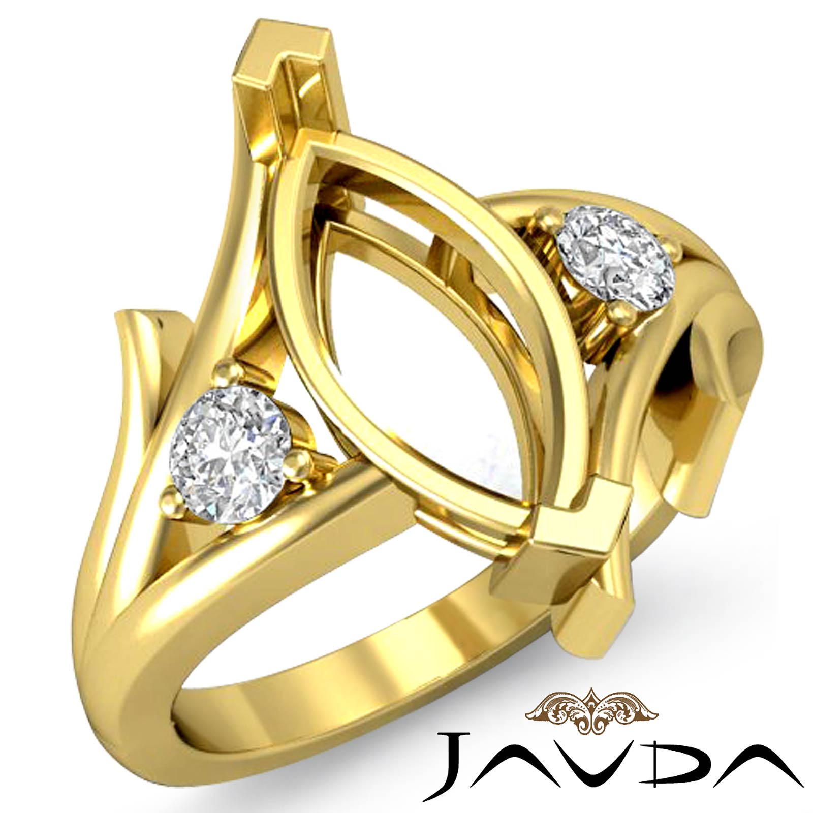Round Diamond 3 Stone Diamond Engagement Ring Setting made in 14k Gold Yellow for Marquise Cut in a Semi Mount. (0.2Ct. tw.)
