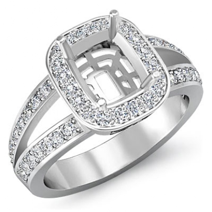 Halo Setting Diamond Engagement Cushion Semi Mount Ring 18k W Gold (0.55Ct. tw.)