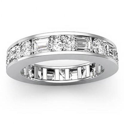 Round Emerald Diamond Womens Eternity Wedding Band 18k W Gold (2.4Ct. tw.)