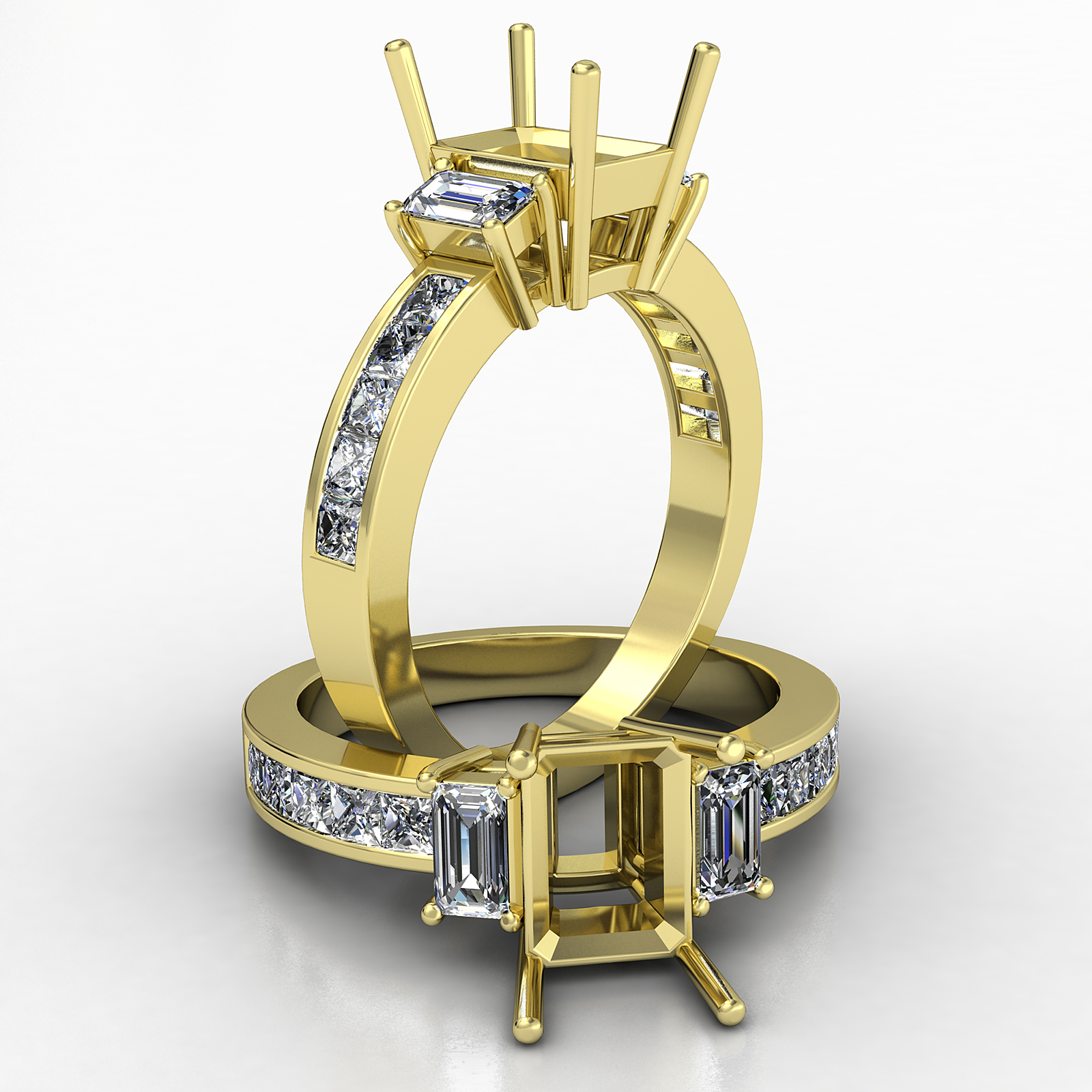 Emerald Diamond 3Stone Engagement Ring 14k Gold Princess Channel (0.8Ct. tw.)