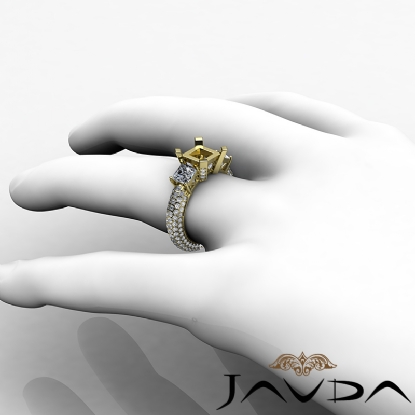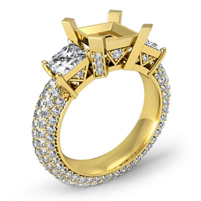 Beautiful in its own way! A glamorous semi mount princess center diamond sparkles, clustered by two princess cut side diamonds all in prong setting. Pave set diamonds enhance this 14k Gold Yellow engagement ring. (2.8Ct. tw.)