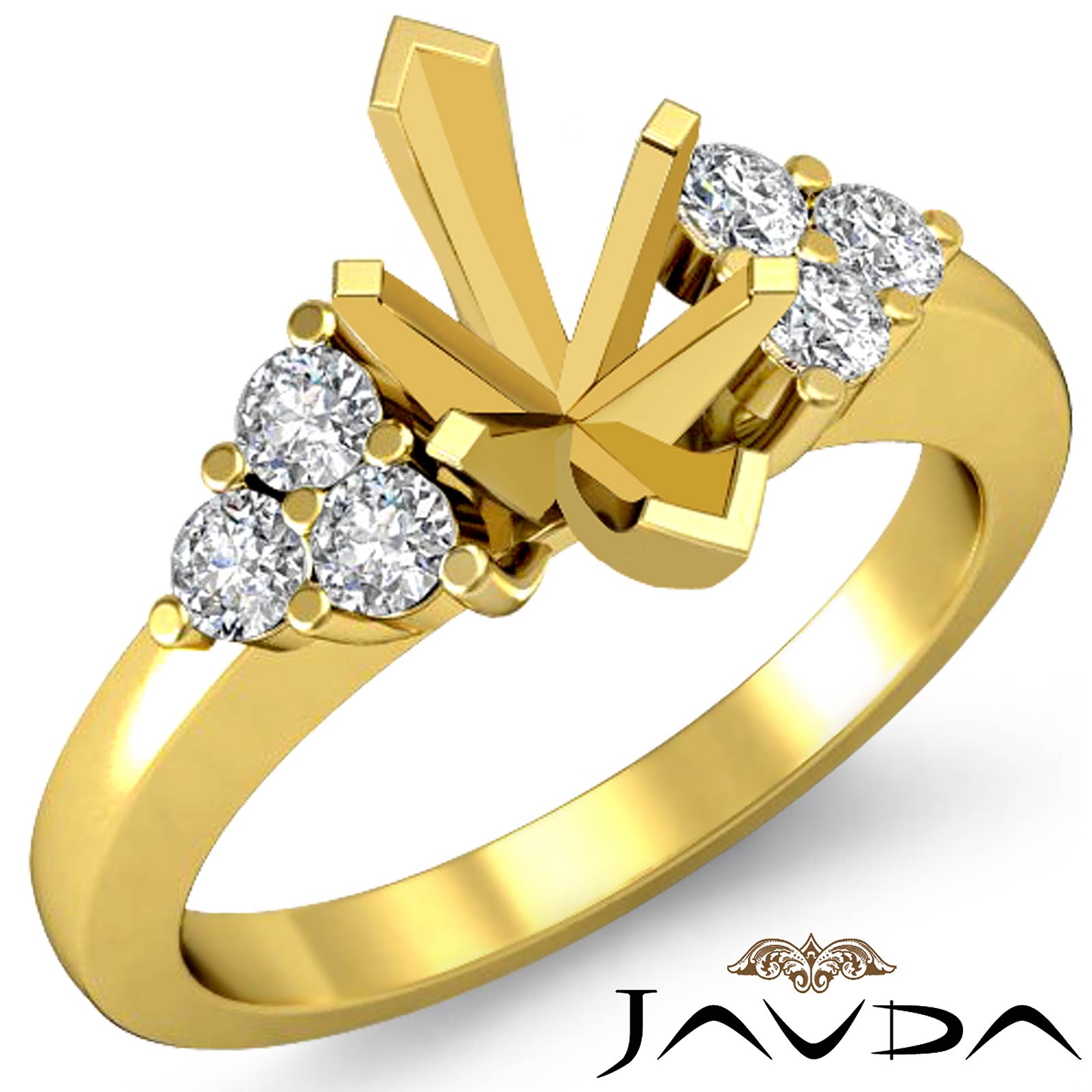 Round Diamond 3 Stone Engagement Ring Setting for Marquise Diamond Semi Mount made in 14k Gold Yellow. (0.3Ct. tw.)