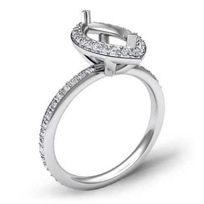 Round Diamond Halo Pave Setting Vintage Engagement Ring made in 18k Gold White for Marquise Shape in a Semi Mount. (1Ct. tw.)