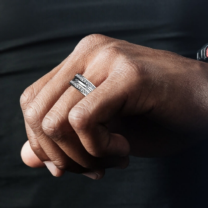 This 9mm wide ring for him is comfort fit & durable and available in 14k & 18k white gold, yellow gold and rose gold & platinum 950.