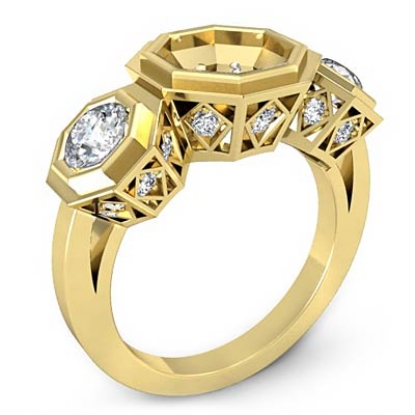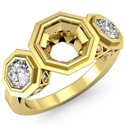 Round Diamond Bezel Set 3 Stone Diamond Engagement Ring Setting made in 14k Gold Yellow for Round Cut in a Semi Mount. (0.84Ct. tw.)