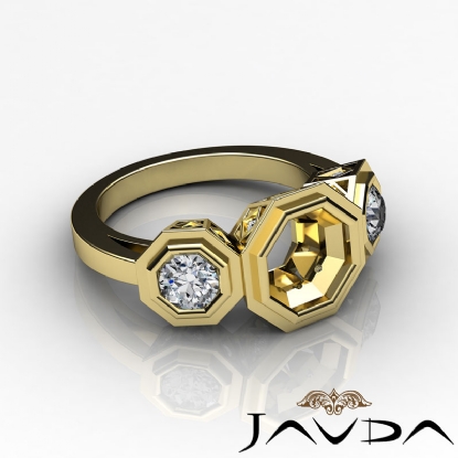 Round Bezel 3 Stone Diamond Engagement Ring 14k Gold Semi Mount (0.84Ct. tw.)