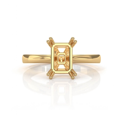 Diamond Classic Plain Traditional Solitaire Engagement Ring Emerald Semi Mount made in 14k Gold Yellow. Can be made with Any Diamond Shape Prong Setting.