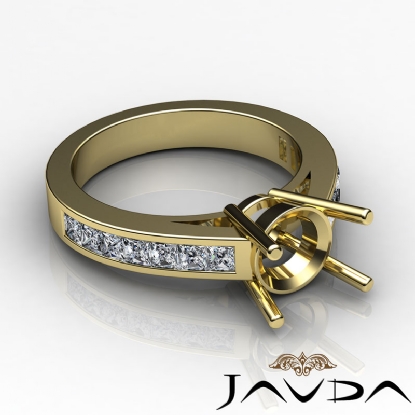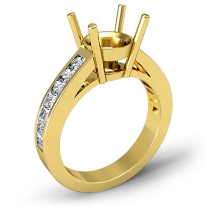 Royal in design, this round semi mount diamond engagement ring will dazzle you. The princess diamond studded shank in channel setting adds to the beauty of the ring. This ring is made in enduring 14k Gold Yellow. (0.5Ct. tw.)