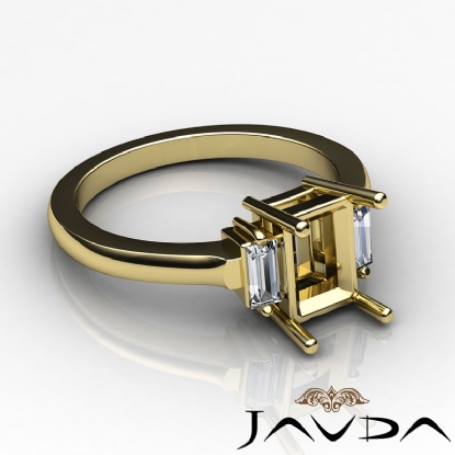 Diamond 3 Stone Engagement Ring Setting for Emerald cut Semi Mount made in 18k Gold Yellow. (0.25Ct. tw.)